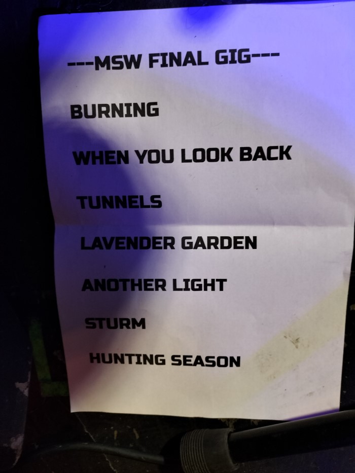 I was staying in the same AirB&B as My Silent Wake founding and only consistent member, Ian Arkley—much thanks to his better half Sarah for making that happen—and found them already there, along with three longstanding friends—JM, DM and MV—who’d also travelled for the gig, beers open and in full swig.