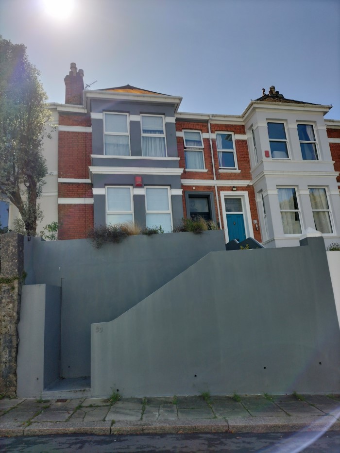 Just a few stairs from the street up to the Air B&B, the sun finally decided to show itself while waiting for the taxi to the train station:
